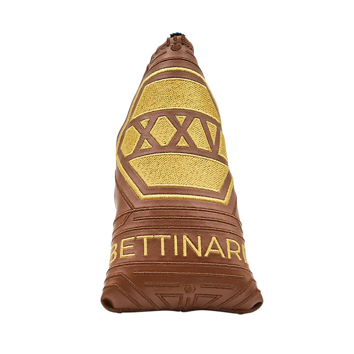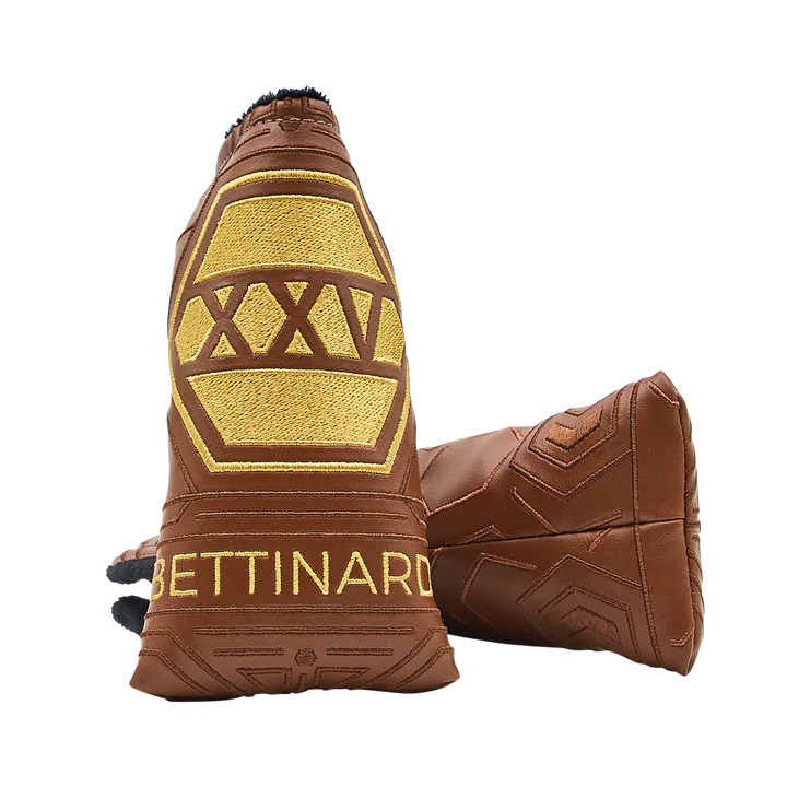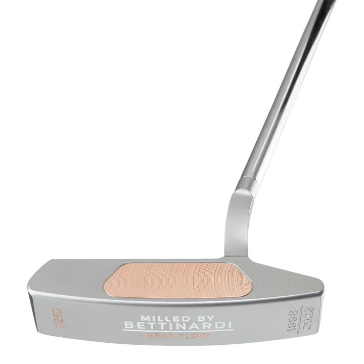 Debuting our third Limited Run of the 25th Anniversary Commemorative putters, the BB41 Flow. This 360-gram BB41F Limited Run features a magnificent Copper insert on the Flymill face and a one-piece milled flow neck. This stunning putter features an open Hex milling with Roman numerals “XXV” in the pocket, while the sole pays homage to the original Millenium Series putter, highlighting the original engraving, “Milled by Bettinardi” and including a “1/250” engraving to mark its limited quantity. This traditional blade putter features a classy paint scheme of copper and white and comes paired with a brown leather 25th Anniversary headcover and a black perforated leather copper stitch back 25th Anniversary Gripmaster grip. Limited quantities are available. Good luck!