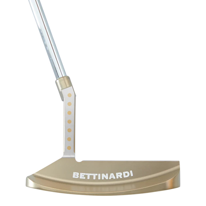 Introducing the fourth Limited Run putter of the 25th Anniversary Commemorative line, the MC-10. This 360-gram MC-10 Limited Run was inspired by the putter used to solidify Bettinardi Golf’s first win on Tour in 1999 and was modified to feature a magnificent Gold Flame finish and a one-piece milled Plumber’s neck. The Plumber’s neck features seven intricately placed Copper plugs on the Tour Blasted side of the neck, while the Gold Flame back includes a “1/250” engraving to mark its limited quantity. This stunning putter features a red Hex milling with Roman numerals “XXV” on the face, while the sole includes an open hex pattern and the pocket features a classic Bettinardi wordmark. This traditional blade putter features a royal paint scheme of red and white and comes paired with a stunning red leather 25th Anniversary headcover with crimson accents and a red perforated leather 25th Anniversary Gripmaster grip with white stitchback.