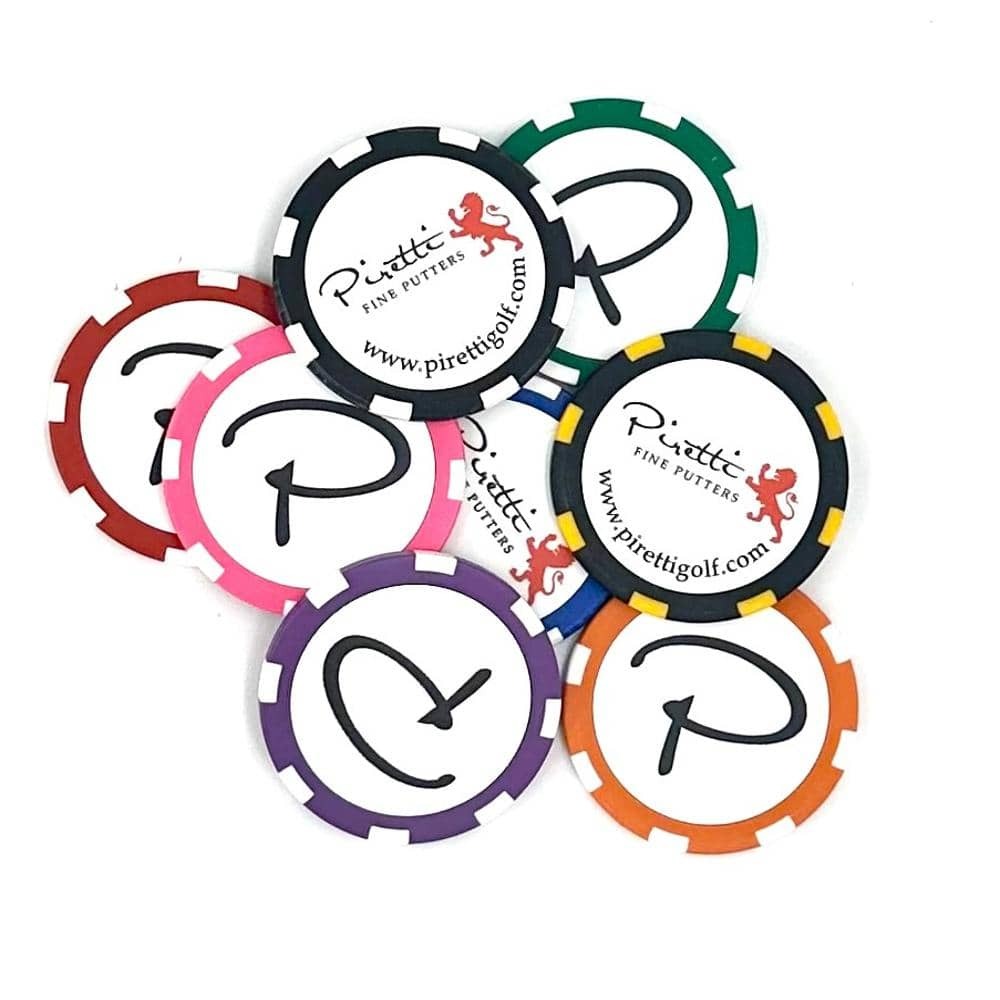 Be Bold, be different, Piretti Poker Chip markers is the finest out there, available in black, red. green, orange, pink, purple, blue, and black/yellow. These poker chips feature the Piretti P on one side and Piretti logo on the other.