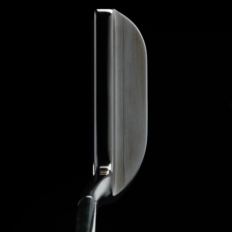 At address, the toplines seem to melt into the shoulders. Then with advanced 3D surfacing techniques the shoulders are milled on a large organic curve and we are able to make a smooth transition directly into our bumpers. Spending extra time during the machining process allows us to create a neck with a consistently soft profile, a surfaced sole that creates the perfect draft angle for putting, and soft edges that are always machined to perfection. The high gloss black oxide finish shows off the precision mill patterns and 3D surfacing we are known for without unnecessary glare or shadowing.