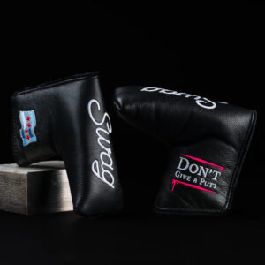 The final touches of a recessed skull engraved on the heel of the face, a simple Swag script in the cavity all meticulously hand-painted with vintage white and Swagenta™ paint. Each model comes paired with a matching made-in-the-USA vintage style velcro headcover (to annoy your playing partners like it’s 1995) and an extra real leather magnet closure cover for actual use, both with softest available furs on the market to ensure the protection of your flat stick.