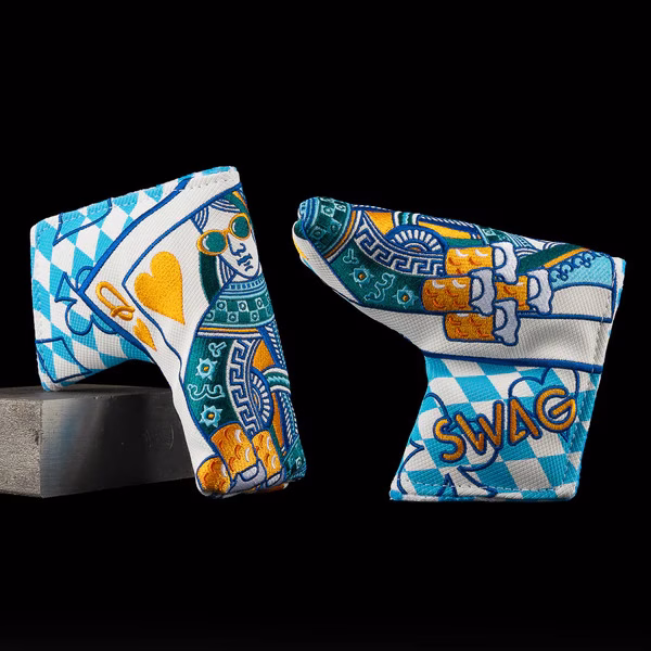 Rule Oktoberfest with the Bavarian Queen Blade Cover. Stitched in bold Bavarian blue and white diamond patterns, this limited-edition design reimagines SWAG’s iconic Queen card art with frothy beer steins in hand. She’s playful, powerful, and ready to protect your flatstick in true festival fashion. Raise your glass, raise your game, and let this Queen reign over your short game.