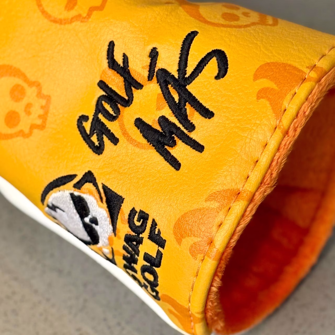 A bold, tongue-in-cheek SWAG Golf fairway wood headcover, the “MILD” edition delivers signature SWAG attitude with premium craftsmanship. Finished in a vibrant orange colourway with an all-over skull pattern, this cover features the embroidered “MILD” crown detail and the classic SWAG phrase “Pulled it, but it’s pin high” across the strap—pure golf humour with unmistakable personality.